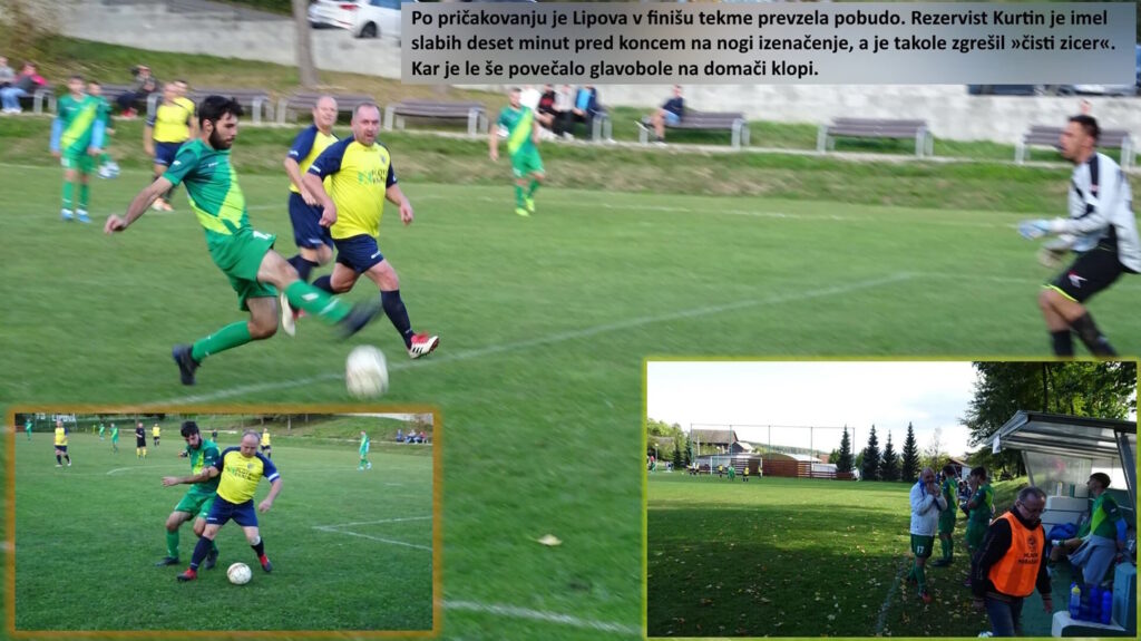Delitev točk za končnih 2:2 je glede na prikazano še najbolj pravična. Zanimivo, da se je z enakim rezultatom končala tudi prva medsebojna tekma v tej sezoni. Sodnik (ki mu je to bila druga druga tekma tega dne) je na tekmi podelil tri rumene kartone. Svojo nalogo je opravil brez napak, delo pa so mu olajšali tudi nogometaši, ki se niso posluževali grobe igre. Glede na videno se zdi trenutna uvrstitev na lestvici za Lipovo kar uspeh. Realno ta hip premorejo premalo kvalitete za naskok na višjo ligo in kakšna dodatna sezona v najnižji ligi jim zagotovo ne uide.