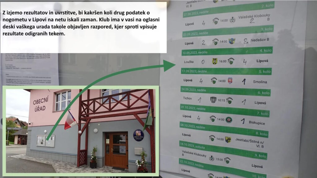 Številčnejša igralska zasedba je v letošnji sezoni prispevala k boljšim rezultatom. Po tretjini odigranih tekem je Lipova zasedala tretje mesto. Zadnjo nedeljo se jim je ponudila lepa priložnost, da svojo točkovno bero še izboljšajo in morda nakažejo kandidaturo za naskok na višjo ligo (ki se je po predsednikovih besedah ne bi branili). Gostili so namreč nižjeuvrščeno ekipo iz 10 km oddaljenega kraja Jestřabi: